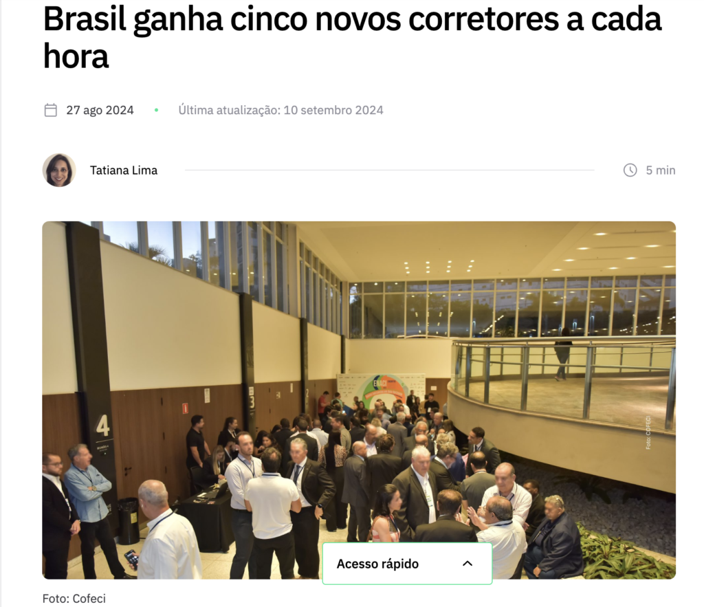 Desde 2018, o número de corretores ativos no país cresceu impressionantes 44%, saltando de 383 mil para 554 mil em 2023, segundo dados do Conselho Federal de Corretores de Imóveis (Cofeci). Este crescimento de 8% em relação ao ano anterior, e uma expansão ainda mais significativa nas imobiliárias, que subiram de 47 mil para 73 mil em operação, ressaltam uma tendência clara de crescimento e consolidação.